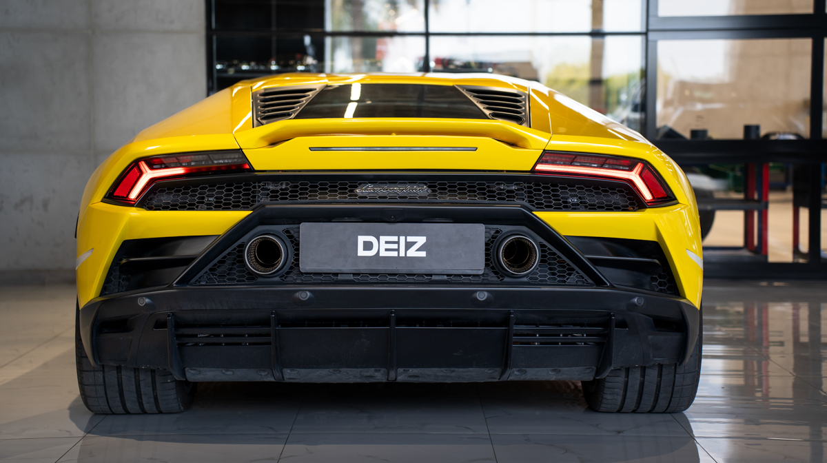 Rent Lamborghini Huracan EVO yellow 2020 in Dubai with DEIZ RENTAL – drive the enhanced evolution of Lamborghini’s legendary V10 supercar. This stunning coupe features advanced aerodynamics, refined dynamics, and 640hp naturally-aspirated power for thrilling performance. Security deposit required. Contact DEIZ RENTAL for current rates and availability.
