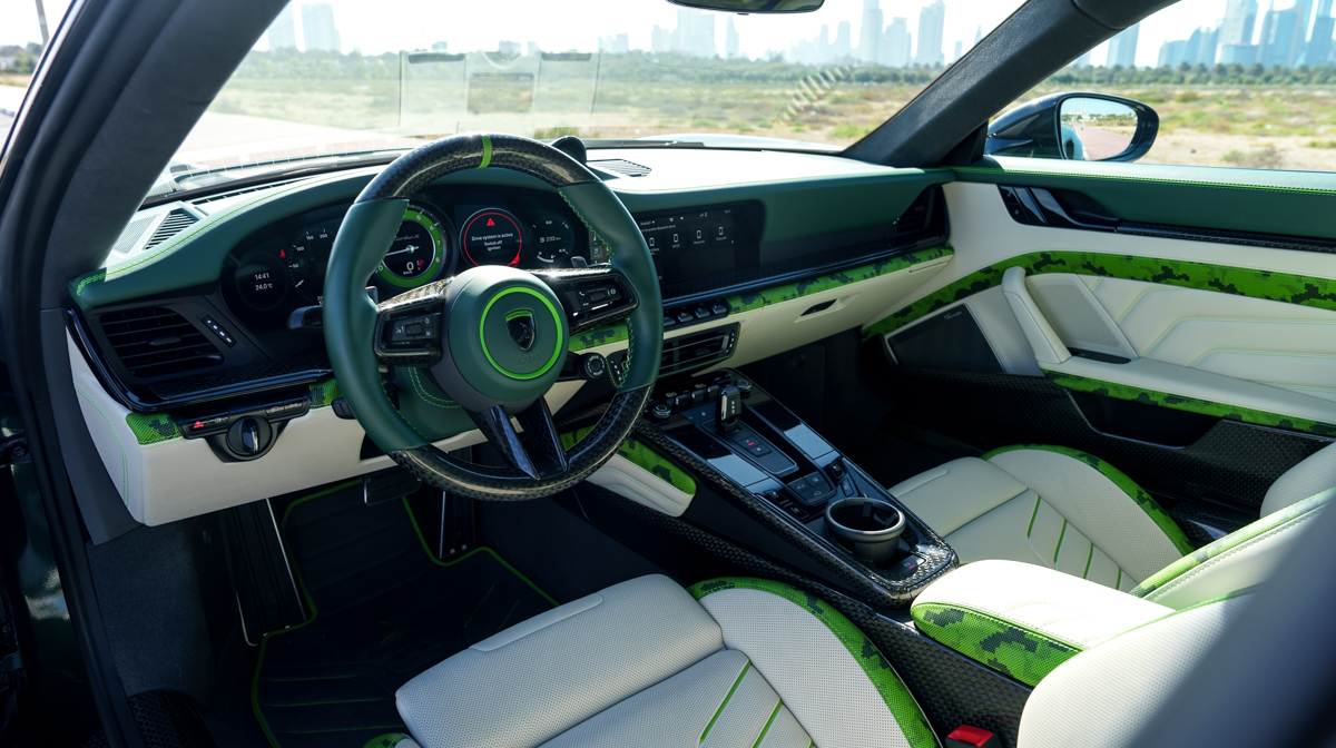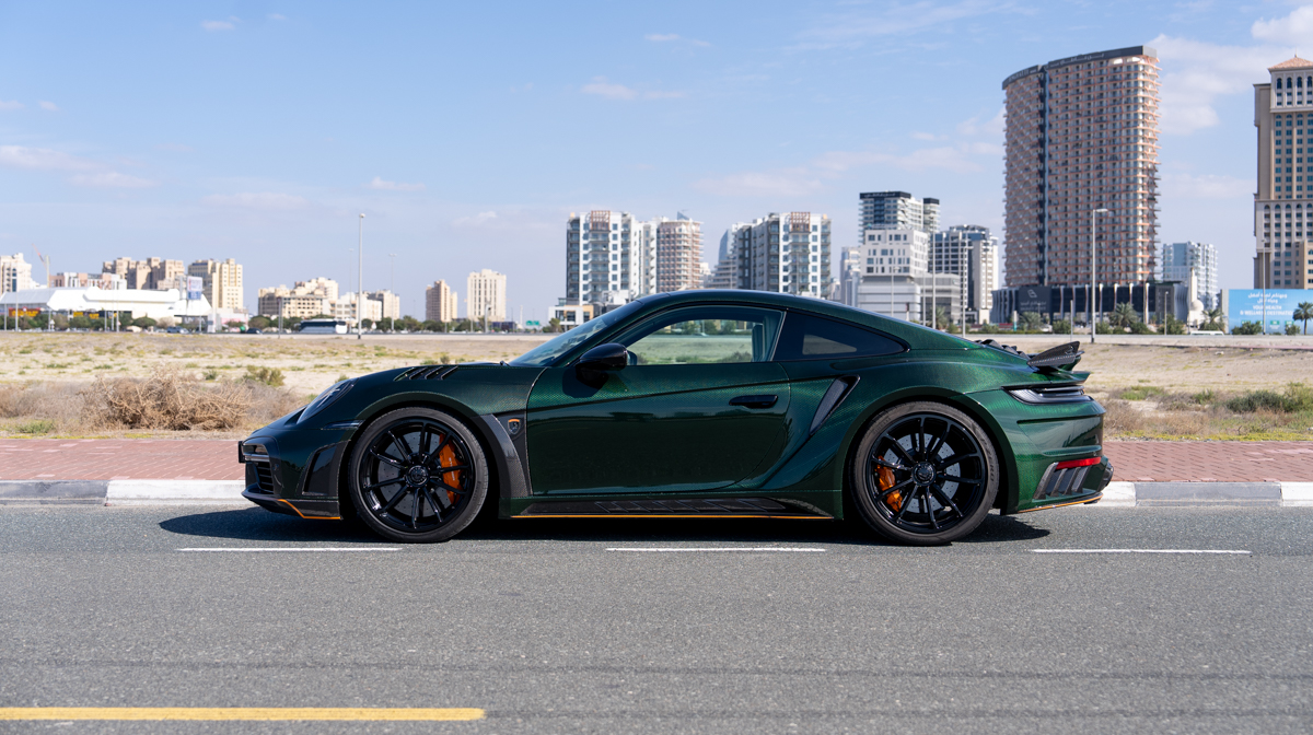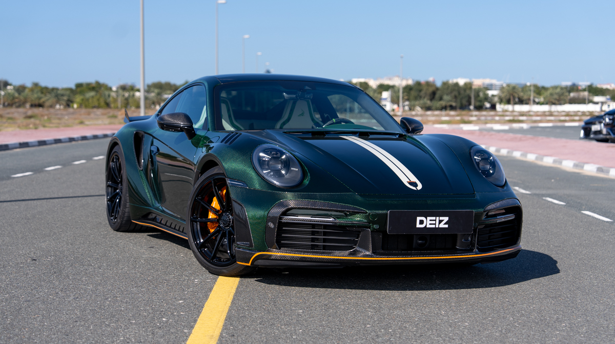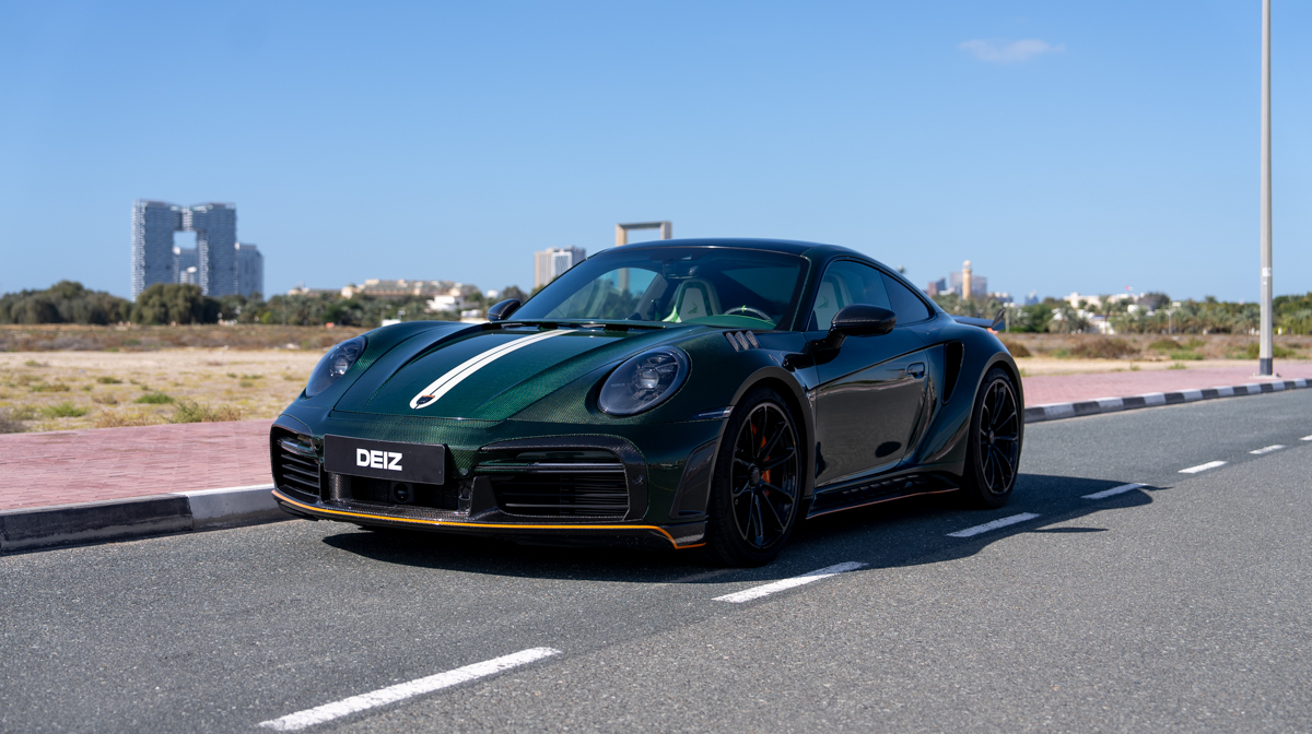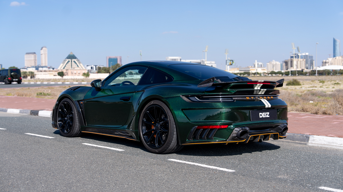 Rent Porsche 911 Stinger GTR 2021 in Dubai with DEIZ RENTAL – enjoy the exclusive TopCar-designed 911 with aggressive widebody styling. This custom creation combines stunning carbon fiber bodywork, enhanced aerodynamics, and bespoke luxury interiors. Security deposit required. Contact DEIZ RENTAL for current rates and availability.